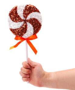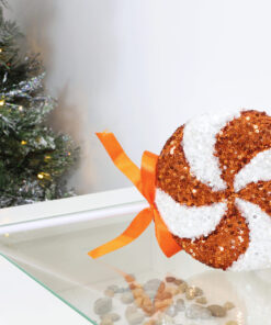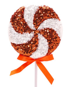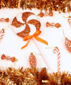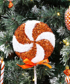 Pack of 2 – 36cm Giant Sparkly Sequin Lollipop Christmas Decoration – Copper & White – Christmas Tree Ornaments