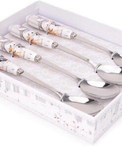 Introducing the Snowman & friends deluxe tableware range designed and manufactured exclusively for Christmas Concepts®. This luxury pack of 4 cake spoons with ceramic handles are decorated with a festive Snowman in a winter wonderland setting, with his forest friends, packaged in a luxury matching gift / storage box. This will make the perfect Christmas gift. It will also compliment any Christmas dinner table, as part of the matching dinner set. Ideal for those sweet treats. Size: Spoon: 15cm (6″). Gift Box: 17 x 14 x 3cm. Please visit our storefront to see our extensive tableware range.