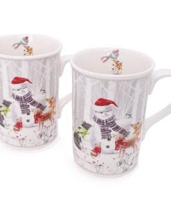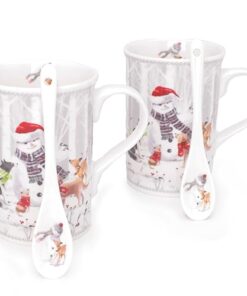 - This luxury 2 piece mug & spoon set are decorated with a festive Snowman in a winter wonderland setting, with his forest friends, packaged in a luxury matching gift / storage box.