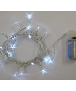 20 battery operated white led lights,takes 3 aa batteries not supplied,perfect for floral decorations, for weddings or for any party,and ideal for any fancy dress costume. The length is 2M.