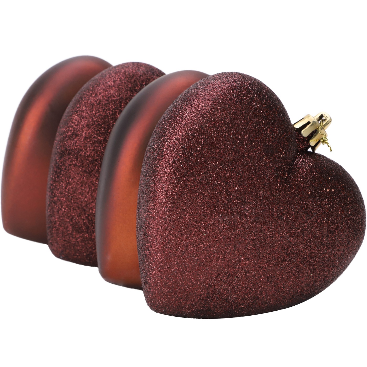 4-100mm Heart Shaped Baubles – Matte & Glitter Design – Christmas Decoration (Mocha)