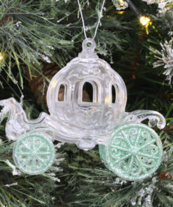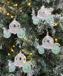 This glitter decorated princess carriage will add the perfect finishing touches to your Christmas display this year. The carriage measures approximately 10cm long with silver hanging string. The carriage has a transparent body with glitter covered wheels for a magical effect. This decoration would be a great addition to any other event for a fairytale and fantasy theme! Designed and manufactured exclusively for Christmas Concepts Ltd