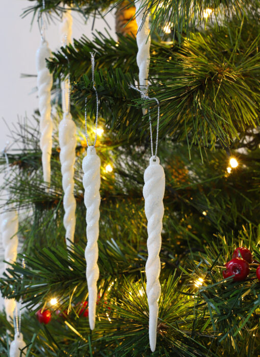 Christmas Concepts® 12cm Glitter Icicle Decorations Christmas Tree Trims (White, Pack of 20)