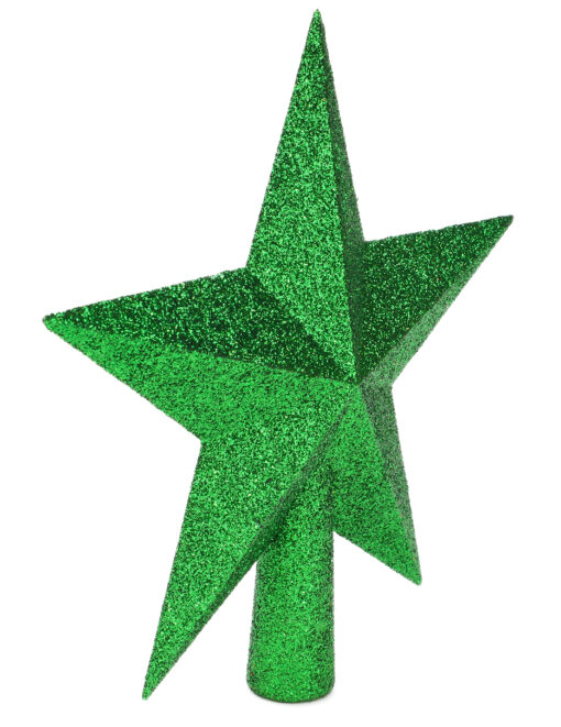 • This tree top star comes covered in high quality one tone shiny glitter.
