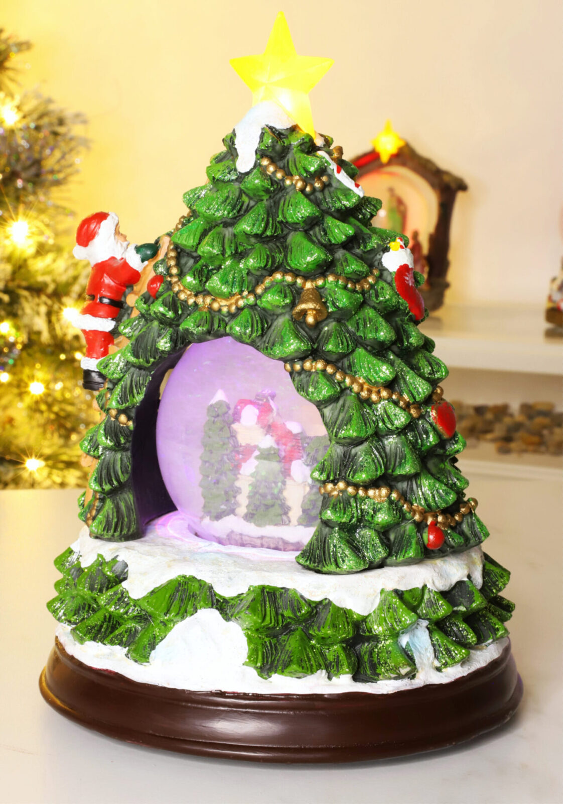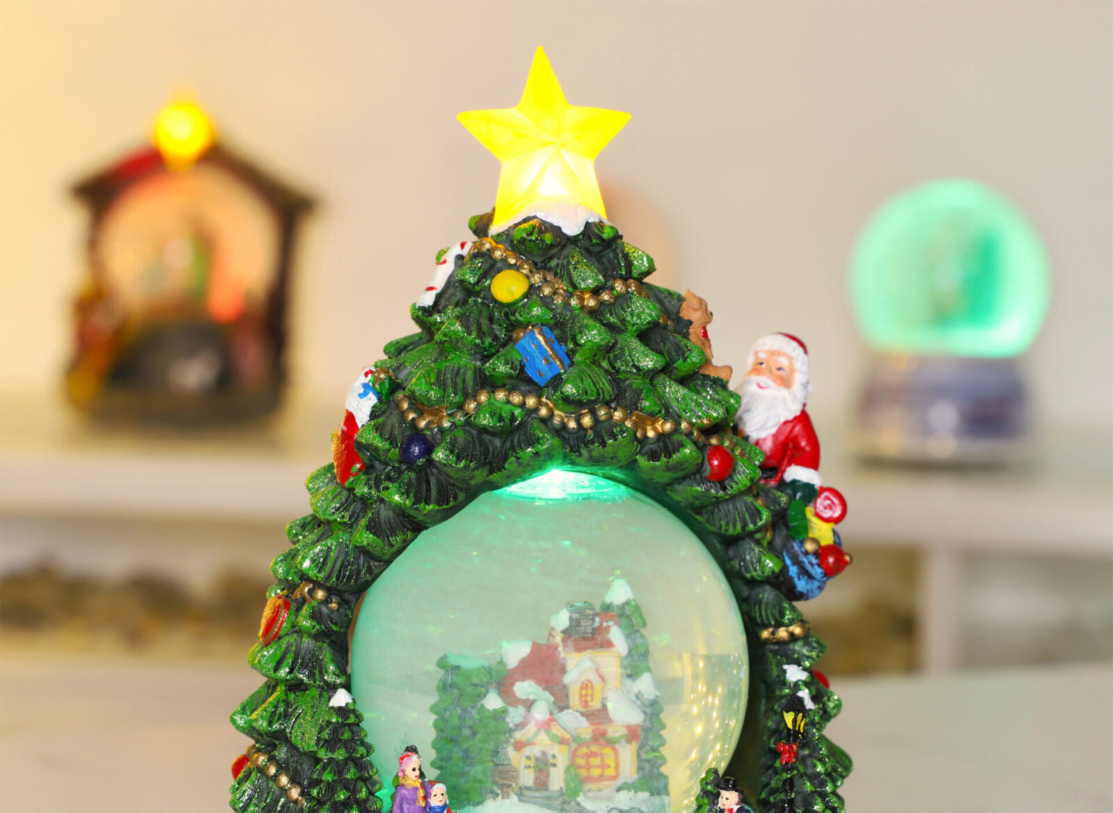 Christmas Concepts® 22.9cm Musical Christmas Tree Shaped Resin Decoration With Water Globe + LED Lights Battery Operated