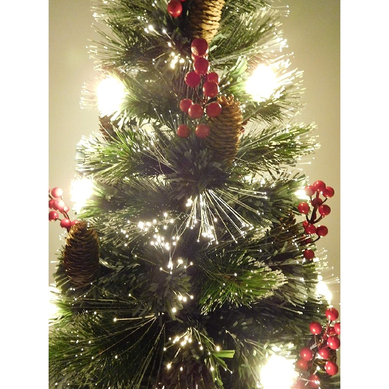 Christmas Concepts® 3ft (90cm) Pre Lit Frosted Fibre Optic Christmas Tree With Natural Cones & Red Berries With Warm White LED Rose Lights