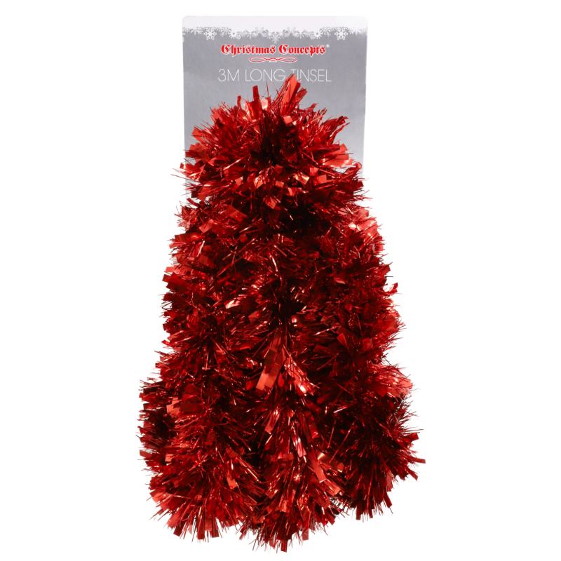 Brighten up your Christmas with this beautiful Red Tinsel! Hang it from your Christmas tree or use it to decorate your home or office! This tinsel is the perfect accessory to finish off your Christmas display! The tinsel is 3m long and features both chunky and fine strands in red. Designed and manufactured exclusively for Christmas Concepts Ltd.