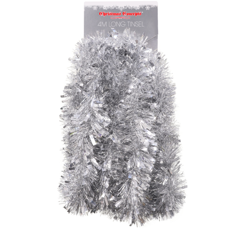 Christmas Concepts® 4m Chunky/Fine Christmas Tinsel – Christmas Decoration – High Quality Tinsel (Silver)