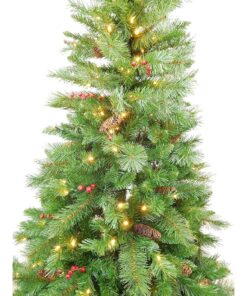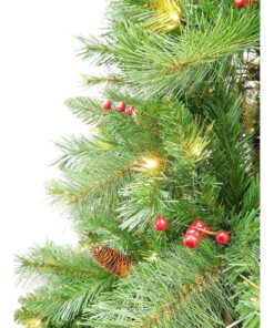 Christmas Concepts® 7 Foot / 84 Inch Prelit Green Christnas Tree with Cones, Red Berries & 400 Static Warm White LED Lights