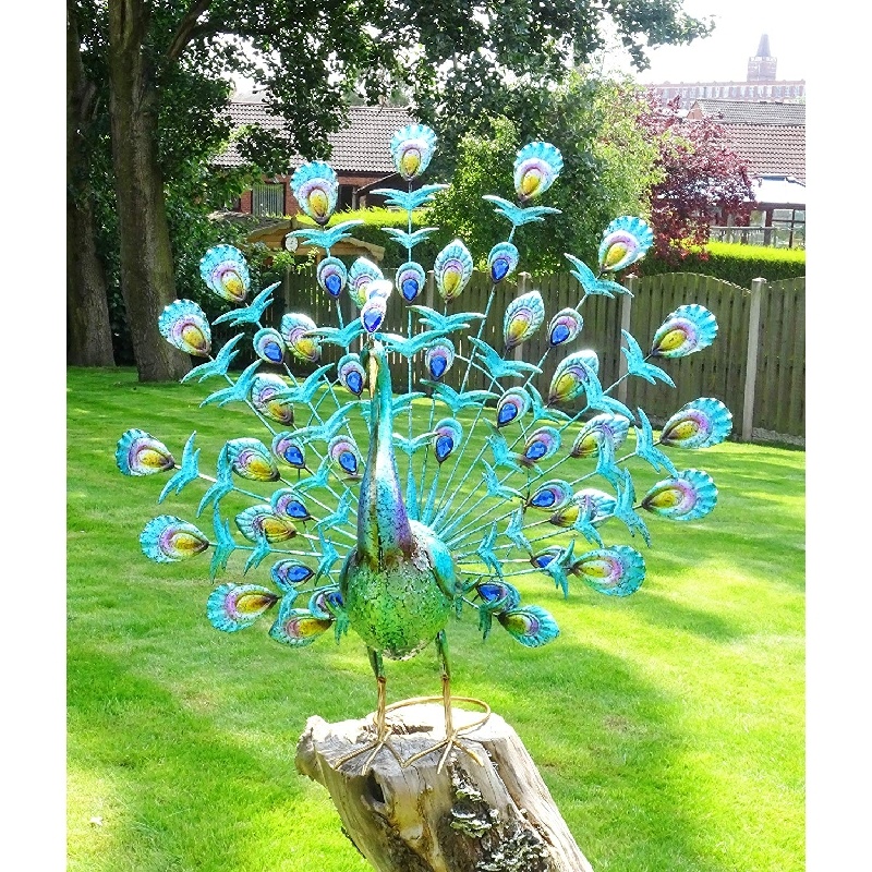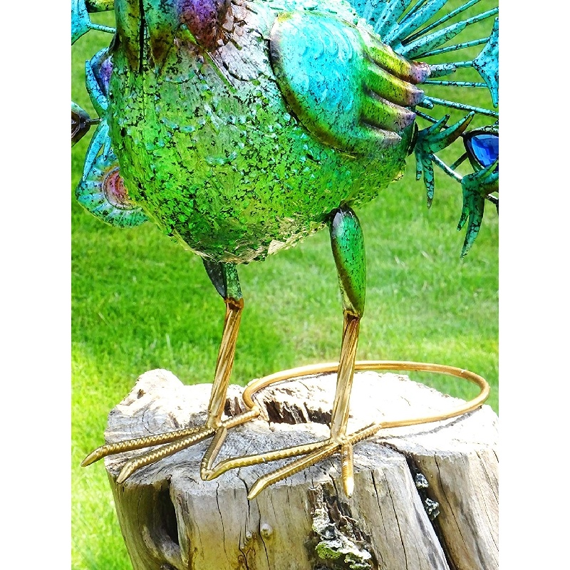 Christmas Concepts® 81cm (32”) Colourful Metal Standing Peacock With Open Jewel Tail Feathers – Indoor/Outdoor Garden Decoration