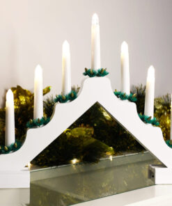 This traditional decoration has been updated with LED lights. LED lights are very bright, low voltage and energy efficient. The bulbs are warm white led. Warm white is like a fairy light colour. It is more of a soft white than ice white. Would look great in the window or on the fireplace! It is battery operated so no trailing wires.