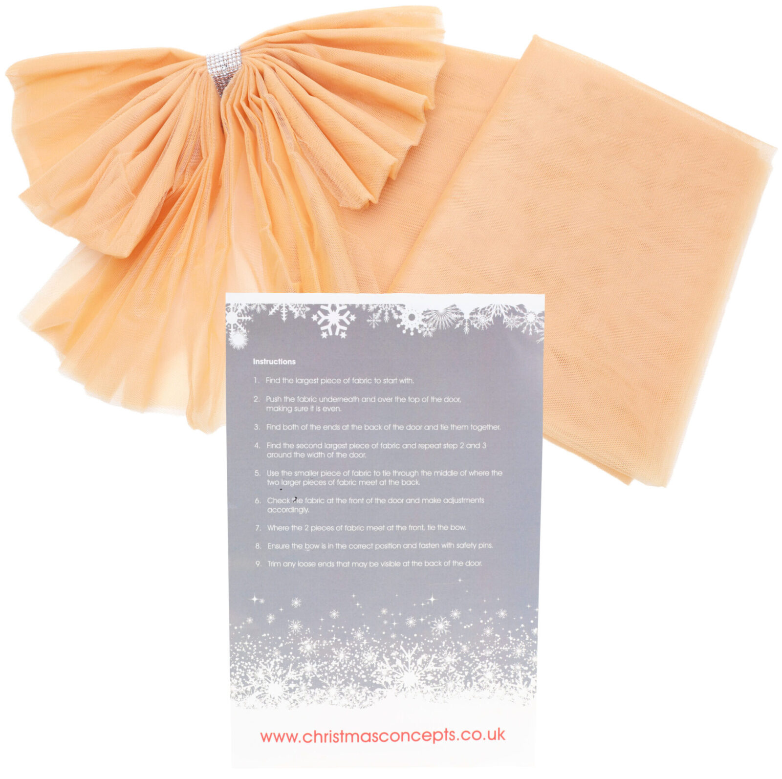 This fabric door bow will look stunning on your door whatever the occasion. Great for weddings, parties, Christmas or even for everyday use to decorate your door. The door bow comes flat packed and you will need to assemble. The bow features diamantes which makes the decoration even more fabulous! This is very easy to make and comes with easy to follow instructions.