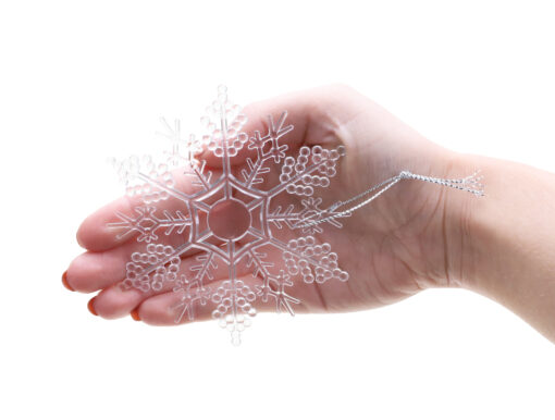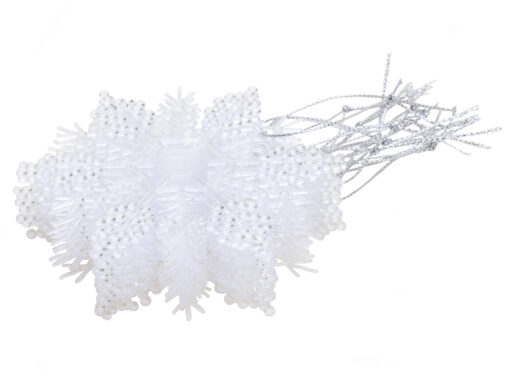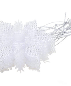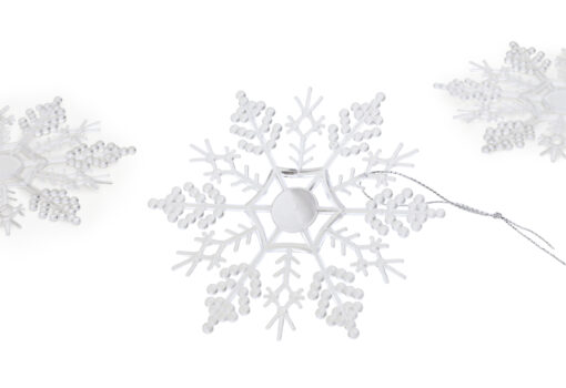 - Each snowflake is approximately 10cm wide and decorated with glitter.