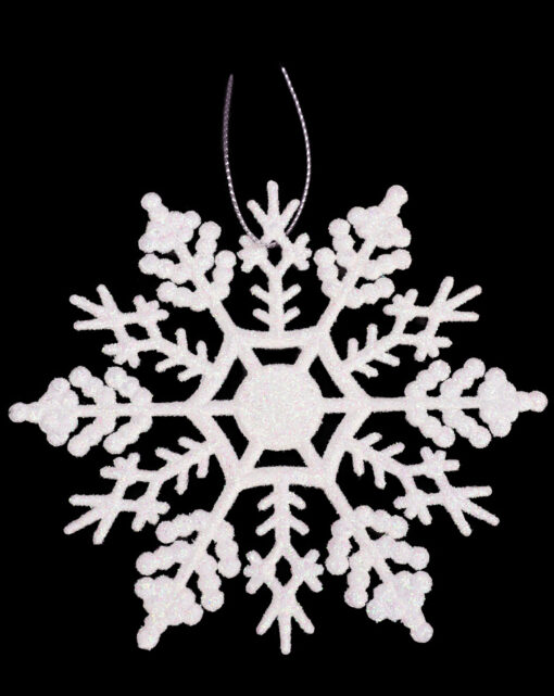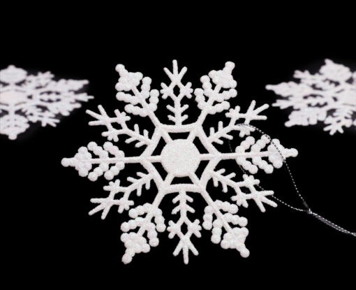 • Each snowflake is approximately 10cm wide and decorated with glitter.