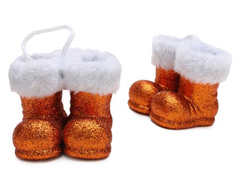 Christmas Concepts® Pack of 2–10cm Glitter Hanging Santa Boots With White Fur Trim – Christmas Tree Trims/ Baubles (Copper)