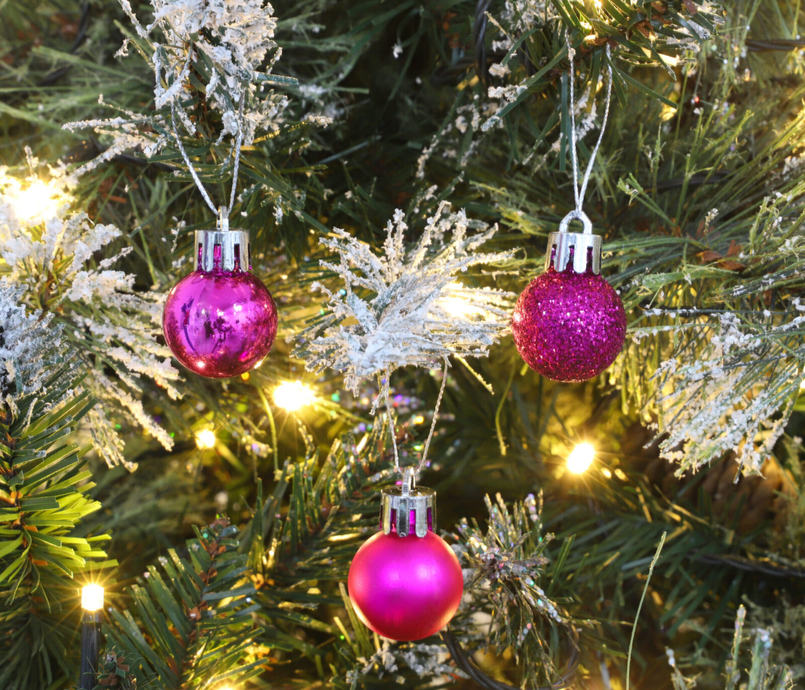 - This pack contains 25 hot pink baubles in total, including an assortment of glitter, matte and shiny designs.
