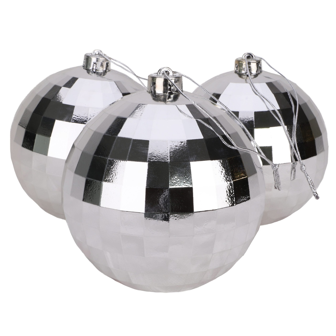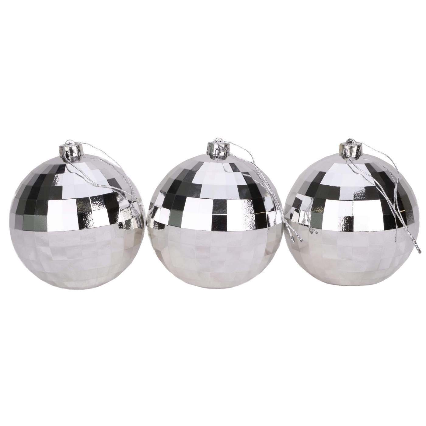 These beautiful large baubles are sure to brighten up any Christmas tree! They can also be used to make a garland by threading string or ribbon through the top and hanging them up in the window, from the mantle piece or on the wall. This pack contains 3 silver baubles in total, with a shiny faceted design. Each bauble measures approximately 15cm and comes with a silver top with a silver string loop attached. Designed and manufactured exclusively for Christmas Concepts Ltd.