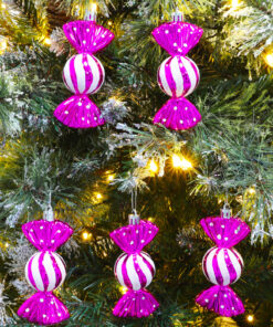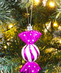 Christmas Concepts® Pack of 5-110mm Large Sweet Shaped Baubles – Shiny & Glitter Decorated – Christmas Baubles (Hot Pink)