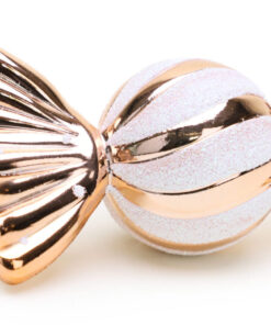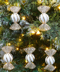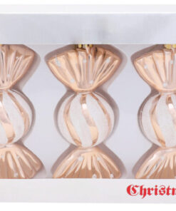 • Each bauble comes decorated with a shiny base, glittery iridescent spotty ends and stripey centre.