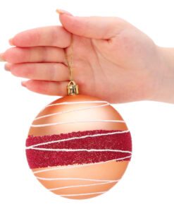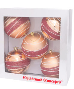 These beautiful shatterproof baubles are sure to brighten up any Christmas tree! They can also be used to make a garland by threading string or ribbon through the top and hanging them up in the window, from the mantle piece or on the wall. This pack contains 5 rose gold baubles in total, including an assortment of matte & shiny with red beads and white glitter swirl designs. Each bauble measures approximately 10cm and comes with a gold top with a gold string loop attached. Designed and manufactured exclusively for Christmas Concepts Ltd.