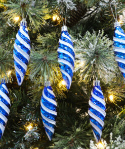 Make your Christmas decor stand out this year with these stunning shatterproof baubles. Each bauble comes decorated with a shiny base and a glittery iridescent spiral pattern. Each bauble measures 110mm x 50mm (4.4 x 2 Inch) and comes with a string loop attachment for easy hanging. The baubles come in a durable storage box; keeping them in great condition to use year after year. Designed and manufactured exclusively for Christmas Concepts.