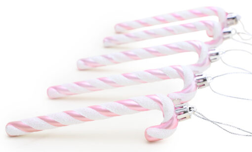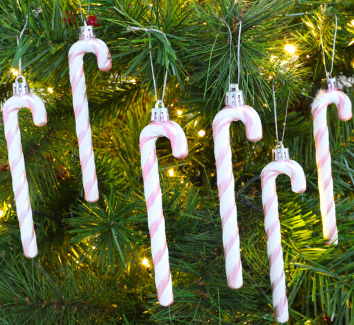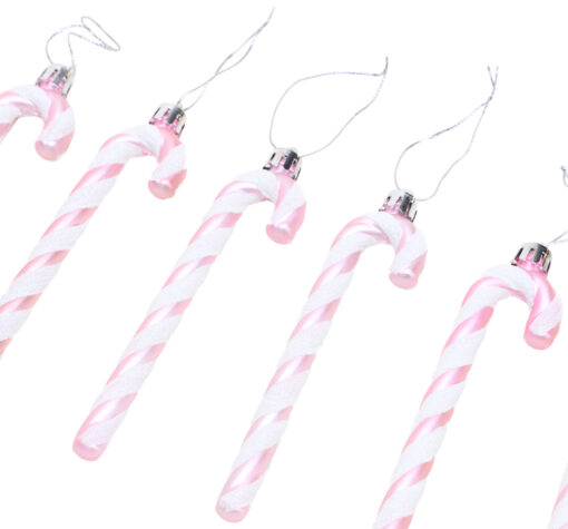 Christmas Concepts® Pack Of 6-13cm Glitter Candy Cane Christmas Tree Decorations (Baby Pink & White)