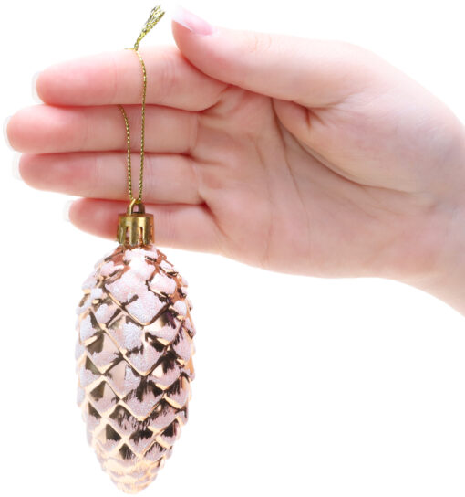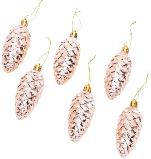 Christmas Concepts® Pack of 6–90mm Shiny & Glitter Decorated Pine Cone Baubles – Christmas Tree Decorations (Rose Gold)