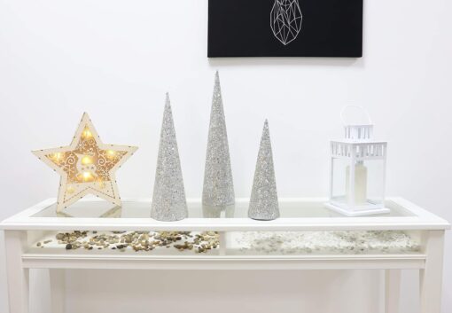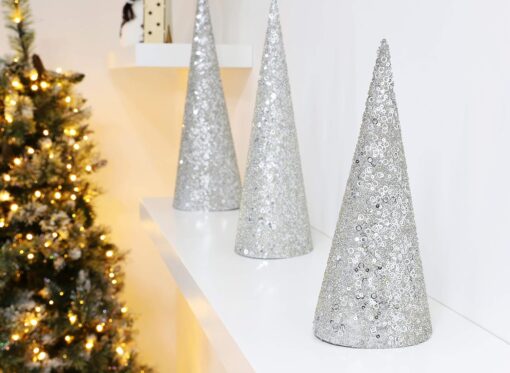 - Bring some glitz into your home this Christmas with this set of 3 cone trees!