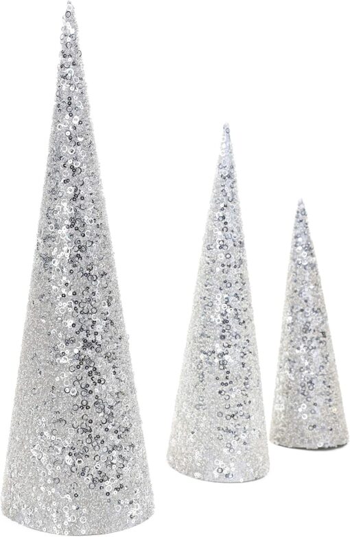 Christmas Concepts® Set of 3 Various Size Christmas Cone Trees Decorations With Sequins And Beads (Silver)