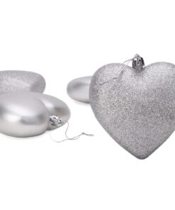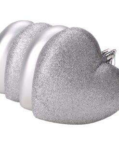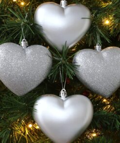 Pack Of 12-100mm Glitter Heart Shaped Christmas Tree Baubles – Matte & Glitter Design – Christmas Decorations (Silver)