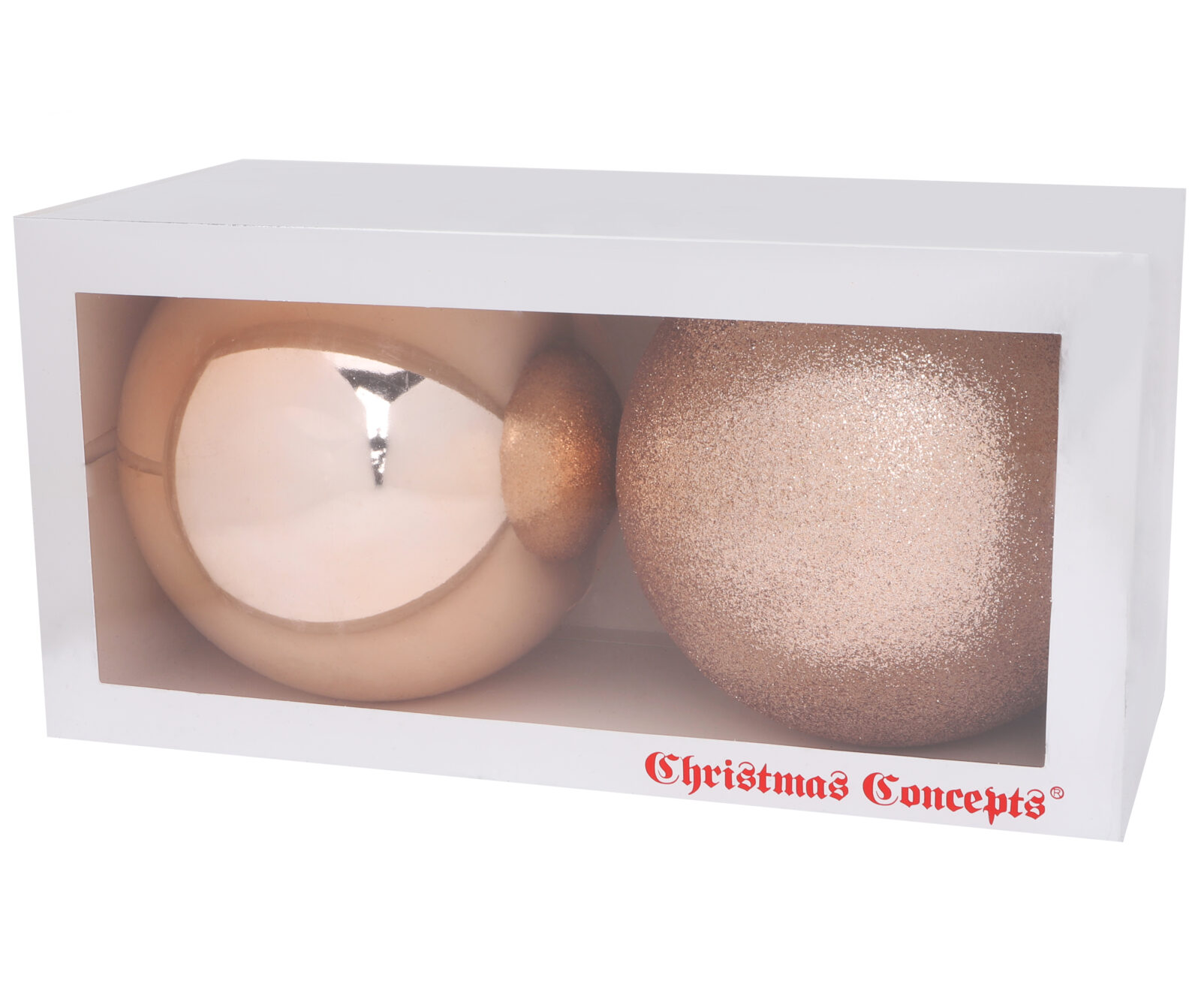 Pack Of 2-200mm Baubles – Shiny & Glitter Design – Giant Christmas Baubles (Champagne)